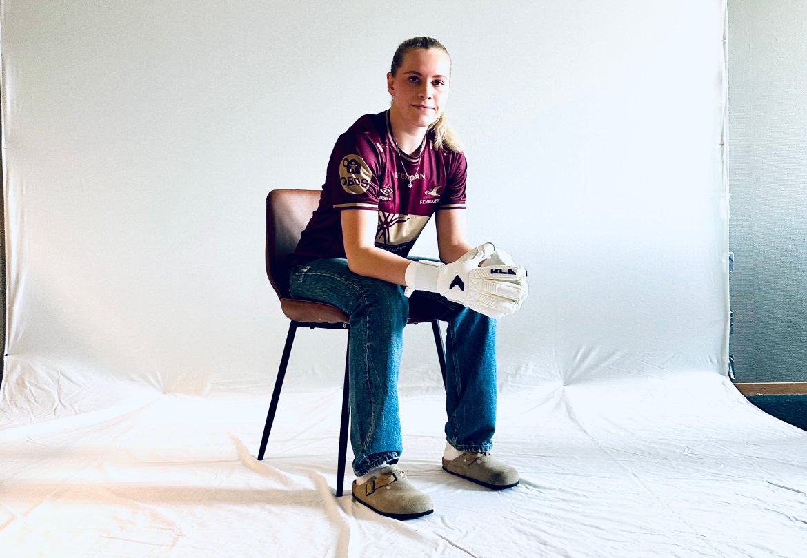 Keeperdrakten vil ha to nyanser av burgunderfargede striper og gullfarget kanting.